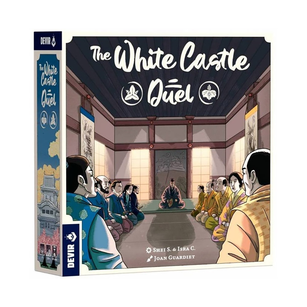 In The White Castle Duel, two clans compete to exert their influence in the White Heron’s court, managing resources and building engines. On each turn, you will use their lamp tokens to obtain resources and activate actions. Among the actions available, you can buy and upgrade influence cards, place clan seals on gardens and training grounds, move your courtier between circles of influence, or trade with the Portuguese. These actions will allow you to accumulate a series of icons – flags, katanas, kabutos, and origami figures – that will reward you with points, and whoever ends up with the most points wins.